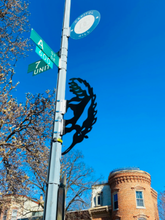 The CHAAAP story began back in 2011, when local Capitol Hill resident Stephen Young was walking around the neighborhood with his two daughters. As they passed the lettered street signs, he pointed them out and said, “E St. E is for Elephant! K St…K is for Kangaroo.” And in that moment, a creative idea was born: why not share that fun, educational experience with all Hill residents by installing animal sculptures on the street signs?